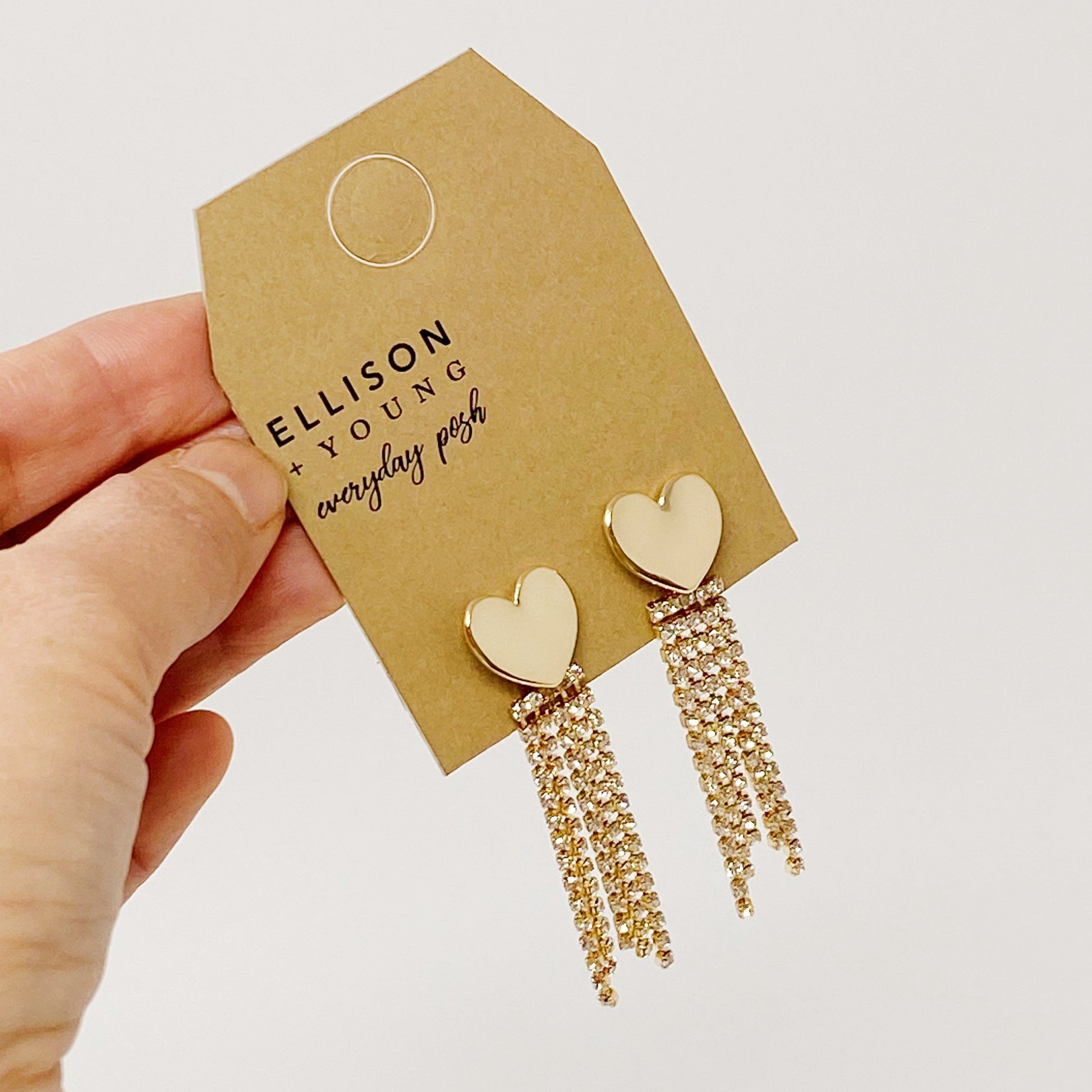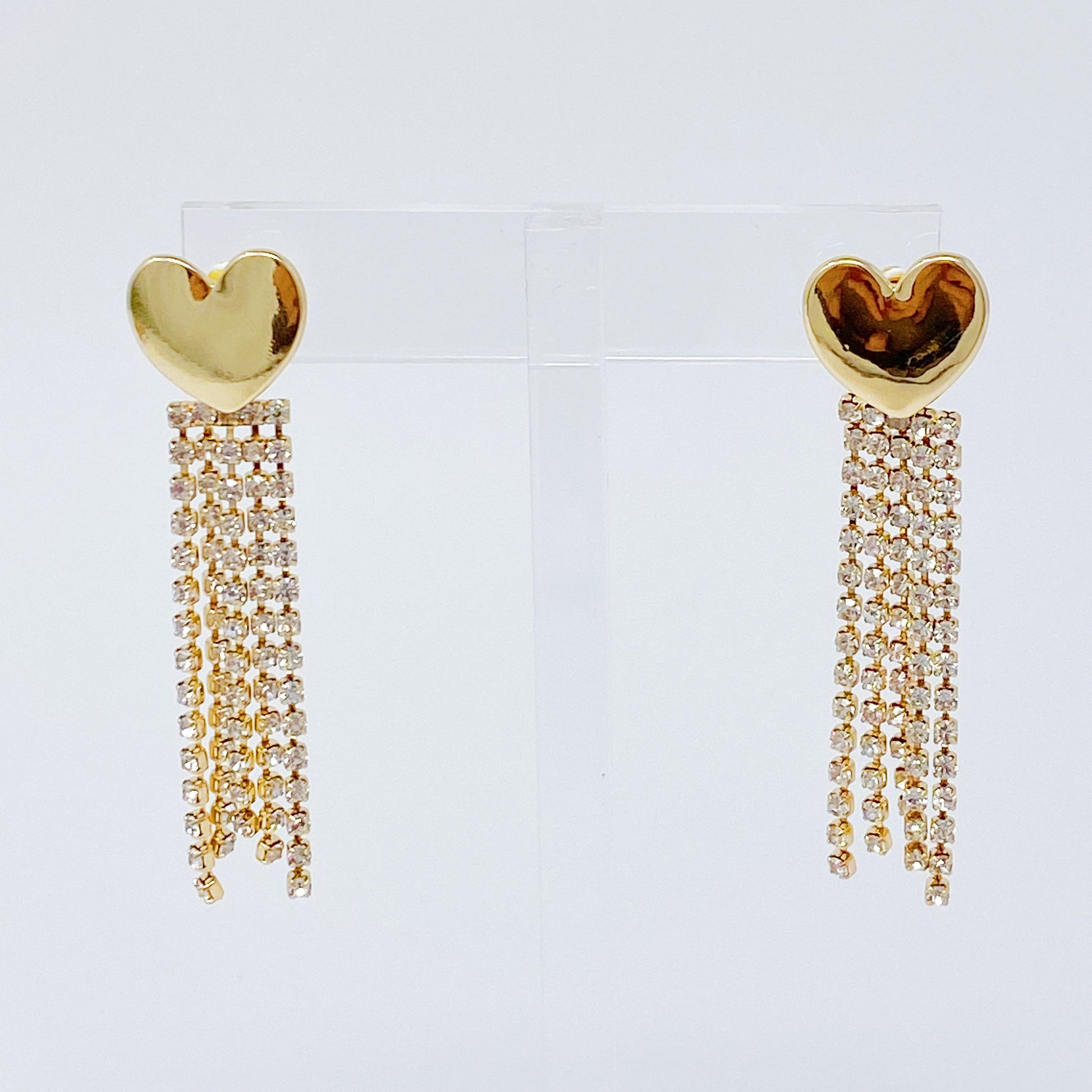 Polished golden heart with Cubic Zirconia chain strands drop make beautiful harmony!